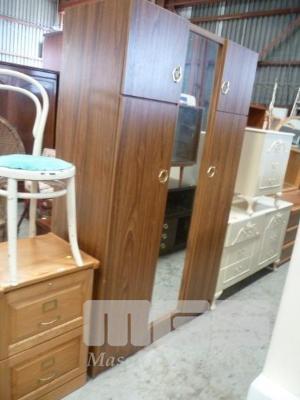 TIMBER LAMINATE WARDROBE,PINE 2 DRAWER FILING CABINET & TIMBER CHAIR
