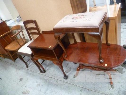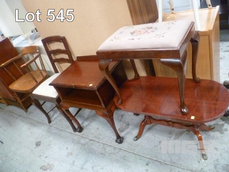 ASSORTED FURNITURE, CAPTAINS CHAIR & DINING CHAIR, FABRIC UPHOLSTERED STOOL, TELEPHONE TABLE & COFFEE TABLE
