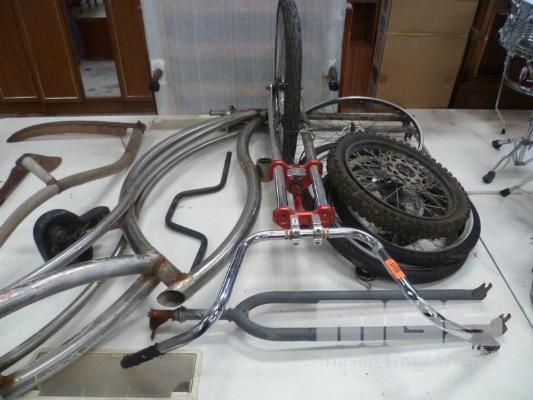 LOWRIDER CHOPPER BICYCLE FRAME WITH ACCESSORIES FOR CUSTOM BUILD