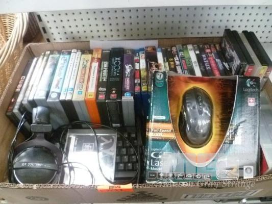 ASSORTED DVDS', PC GAMES, KEYBOARD, HEADPHONES, ETC