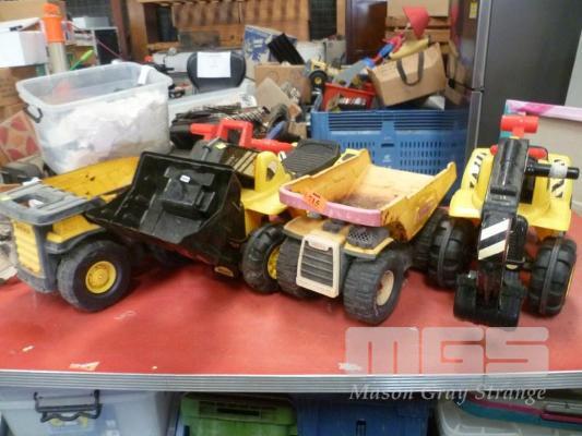2 x TONKA TRUCKS & 2 x RIDE ON PLASTIC TRUCKS