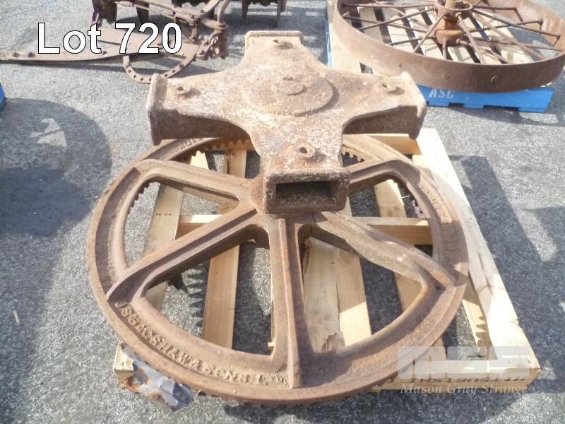 VINTAGE, CAST IRON, MILLING CRANK, 4 X HORSE DRAWN CAPACITY, EMBOSSED ON CRANK, ' JS BAGSHAW & SON, ELIZABETH ST, ADELAIDE' (1 X SPOKE BROKEN)