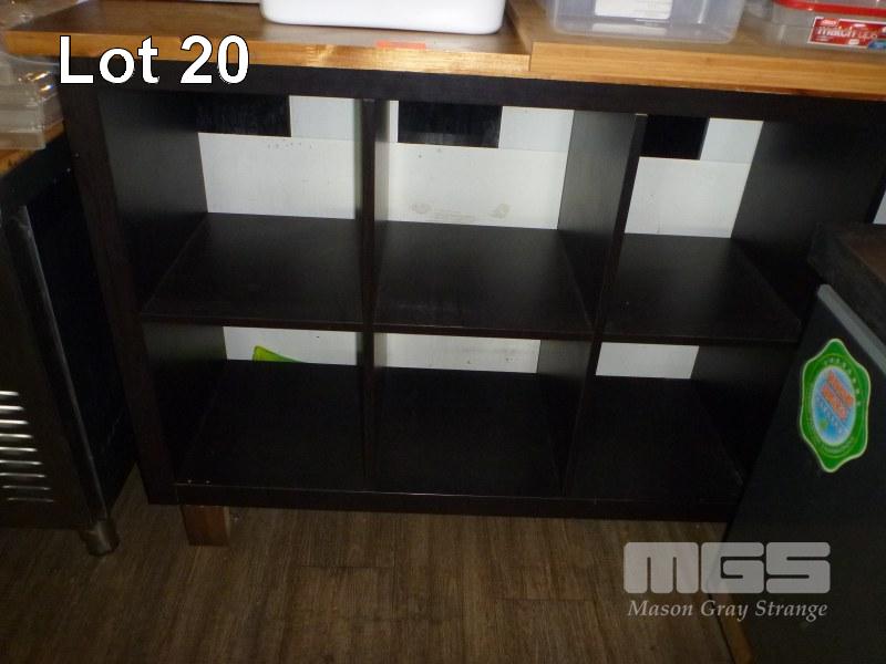 8 CUBE SHELF UNIT, BLACK, WITH TIMBER TOP