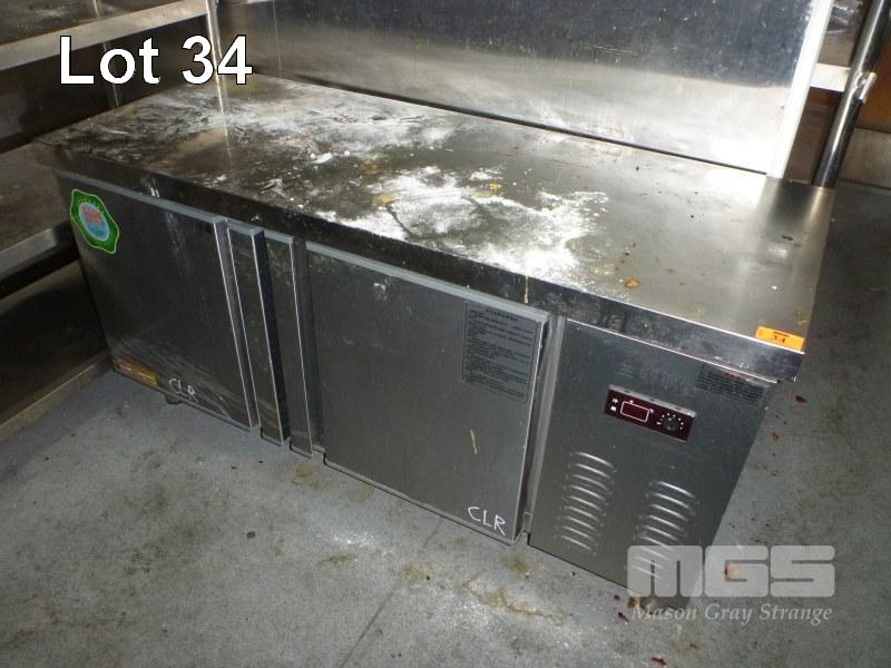 COUNTER CHEFS FRIDGE, 2 DOOR, 150cm, STAINLESS STEEL CASED SELF CONTAINED UNIT, 240V (NOT IN USE, CONDITION UNKNOWN)