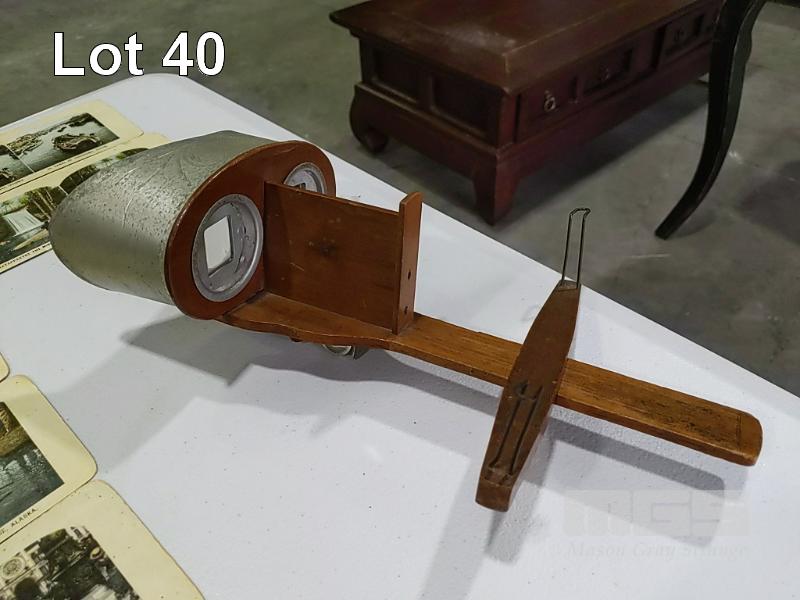 ANTIQUE WOODEN STEREO VIEWER AND 50 x CARDS