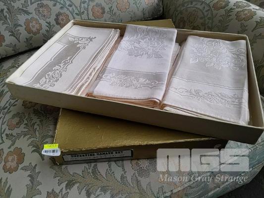 VINTAGE "SUPER FINE" DAMASK TABLE NAPKINS IN ORIGINAL BOX