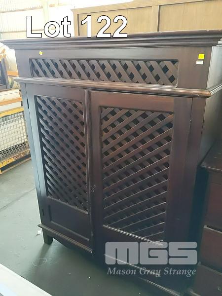 REPRODUCTION MAHOGANY ENTERTAINMENT CABINET WITH LATTICE DOORS