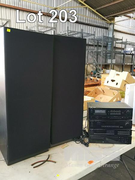 KENWOOD SOUND SYSTEM INCLUDING AMPLIFIER (KA-129), AV SOUND PROCESSOR (SS-992), AM-FM STEREO TUNER (KT-58), COMPACT DISC PLAYER (DP-49) AND 2 x SPEAKERS (SOME WEAR & TEAR ON SPEAKERS)