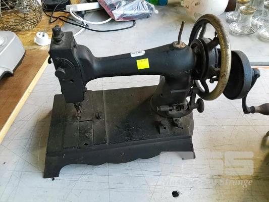 ANTIQUE HAND CRANKED SEWING MACHINE.