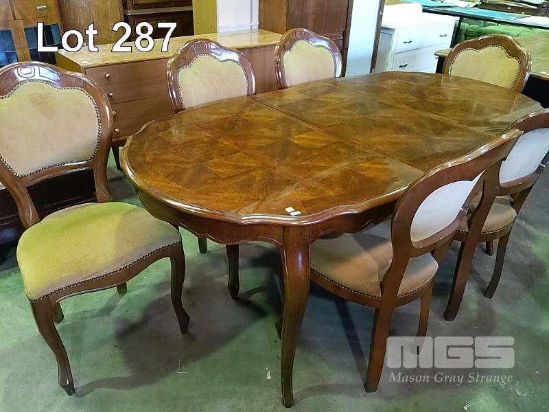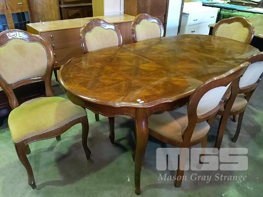 WALNUT 6-SEAT EXTENDABLE DINING TABLE WITH SABRE LEGS AND 6 x QUEEN ANNE DINING CHAIRS