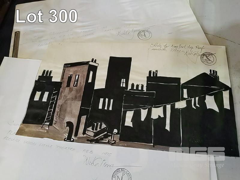 LARGE QUANTITY OF ORIGINAL ARTWORKS, SKETCH BOOKS, SKETCHES, DRAWINGS, CLIPPINGS, COSTUME DESIGNS, STAGE SET CONCEPT DRAWINGS, PHOTOGRAPHS, PAPERS AND MORE BY ARTIST NICK G PYRROS.