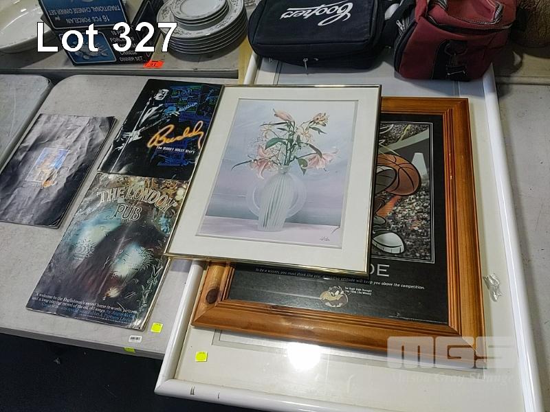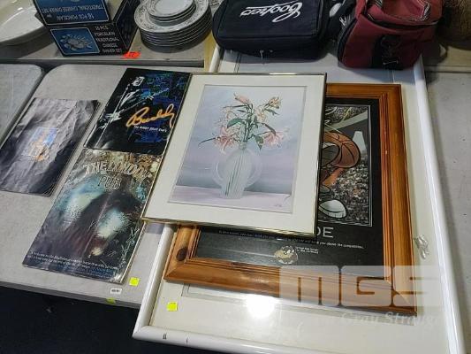 3 x FRAMED PRINTS, ROD STEWART "BLONDES HAVE MORE FUN" WORLD TOUR 1978/79 OFFICIAL PROGRAM. BUDDY "THE BUDDY HOLLY STORY" OFFICIAL PROGRAM AND "THE LONDON PUB" LP RECORD AND EXTENDED COVER DEPICTING LONDON PUBS CIRCA 1960s.