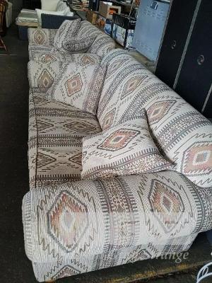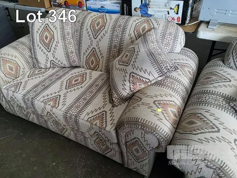 2 x MATCHING 2-SEATER FABRIC ROLLED ARM LOUNGE CHAIRS