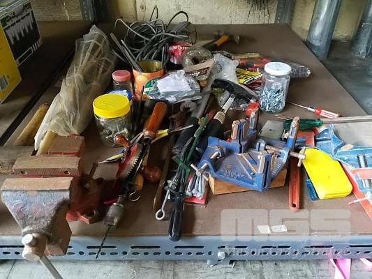 VARIOUS TOOLS INCLUDING BABY VICE, CORNER CLAMPS "MARPLES 6809", VINTAGE HAND DRILL ETC