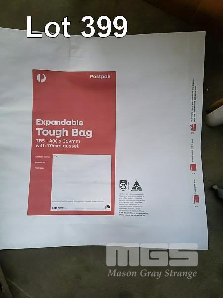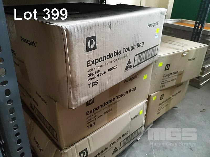 5 x CARTONS POSTPAK EXPANDABLE TOUGH BAG, 100 UNITS EACH (TB5 - 400 x 369mm WITH 70mm GUSSET). 2 OF THE 5 OPENED AND HALF FULL.