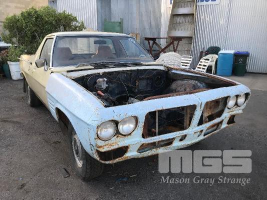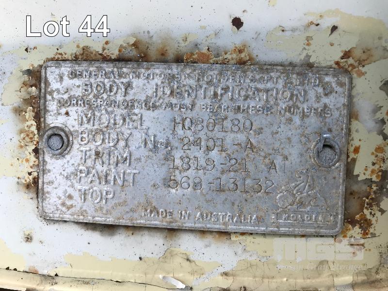 1972 HOLDEN HQ BELMONT UTILITY REG: RUD047 (SA) (EXPIRED) ODO: 13,005 MILES INDICATED NO ENGINE, NO TRANS, PETROL, COVERT BEIGE, 2 DOORS, 2 SEAT, AIR CON, SPARE WHEEL, TOW BAR, GTS GUARDS (1 X DENTED) ORIGINAL OWNERS MANUAL & SEVICE BOOKS (1 OWNER) BODY STYLE - 80180 VIN # L218283 TRIM # 1819-21A BODY S/N-2401 A CHASSIS # CHQ16576A DELIVERY DATE 23/10/72 NO ENGINE OR TRANS RESTORATION REQUIRED (NO PAPERS, NO OWNER'S MANUAL, NO SERVICE BOOKS)