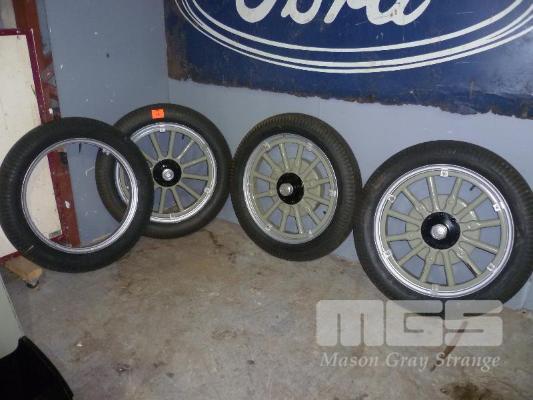 1923 DODGE BROS TIMBER SPOKE WHEELS 2 X REAR WITH DRUM BRAKE COMPONENT 2 X FRONT 1 X WITHOUT SPOKES (NO PAPERS, NO OWNER'S MANUAL, NO SERVICE BOOKS)
