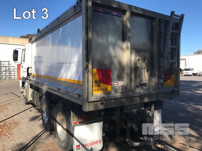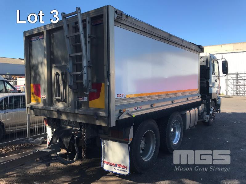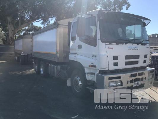 2016 ISUZU GIGA CXY 455 PREMIUM 6 X 4 TIPPER WITH DOG TRAILER REG: SB18LL (SA) VIN: JALCXYS2M87000265 ENG: 6WG1426104 ODO: 387,770 kms SHOWING GVM: 26,000 kg GCM: 54,000 kg LENGTH: 16FT SITEC SERIES II, 6 CYLINDER, 12 SPEED AUTOMATIC MANUAL, DIESEL, AIR BAG SUPSENSION, WHITE, 22.5 TYRES 2 DOORS, 2 SEAT, AIR CON, CD PLAYER, CB RADIO, RING FEEDER, SLEEPER CAB, VISOR, PBS RATED RAZOR TRAP AUTO COVER KEY #33 2016 HAMELEX 20FT DOG TIPPING TRAILER REG: SY27FW VIN: 6F80000000B090166 ATM: 26,000 kg AIR BAG SUPSENSION, TYRES 22.5, RING COUPLING RAZOR TRAP AUTO COVER (WITH PAPERS, WITH 1 KEY/S, NO OWNER'S MANUAL, NO SERVICE BOOKS)