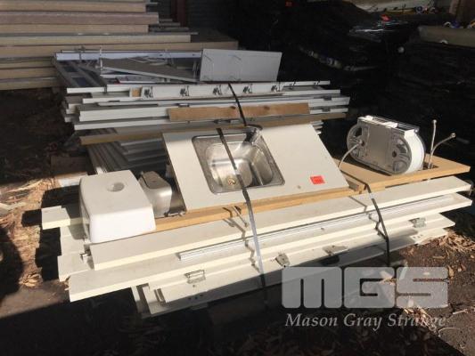 CHANGE ROOM FITOUT (SALVAGE) DOORS, BASINS, CLOTHES HOOKS, ETC. 2 x PALLETS