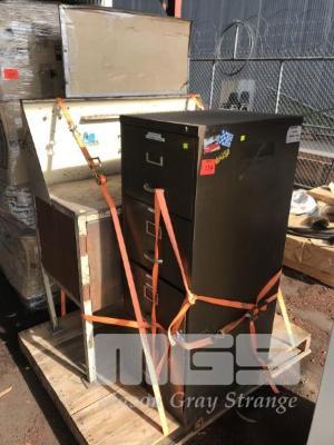 STEEL FRAME WORK BENCH, 2 DOOR BACKBOARD, 115cm, WITH 4 DRAWER FILING CABINET