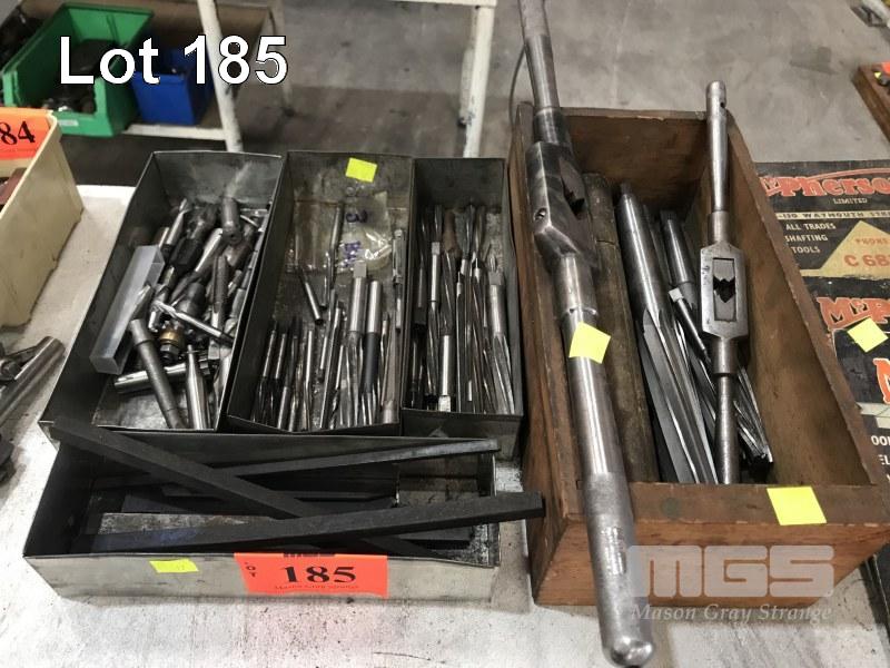 50 (APPROX) x ASSORTED STRAIGHT & TAPER SHANK REAMERS & 2 x TAP HANDLES