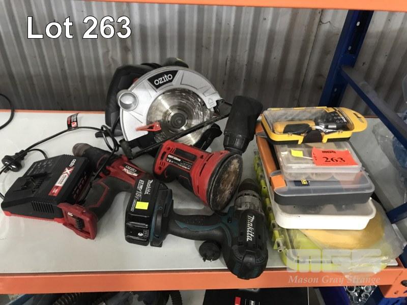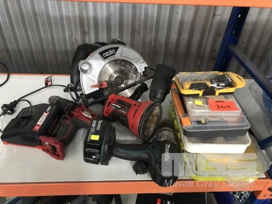 CORDLESS DRILL, CIRCULAR SAW, SANDER & ASSORTED DRILL KITS