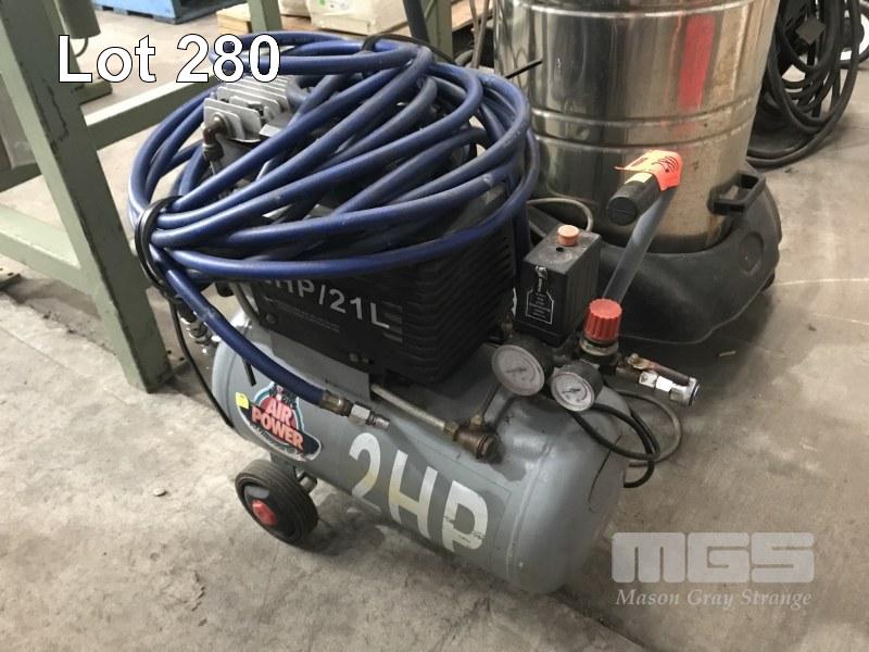 DIRECT DRIVE AIR COMPRESSOR, SUPERWORKS AIRFLOW 21 LITRE, 2HP, 240V WITH AIR HOSE & BLOW GUN