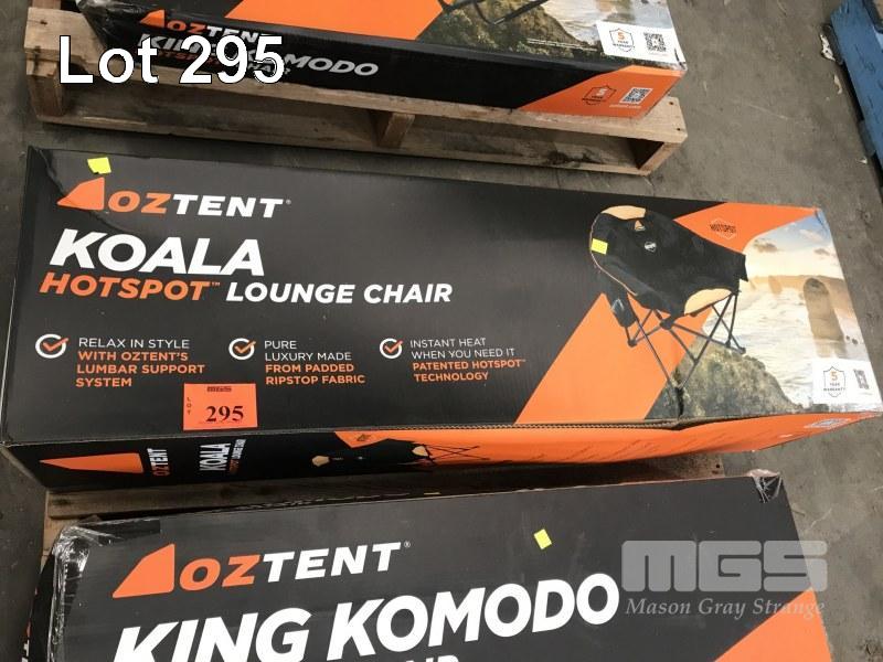 CAMP LOUNGE CHAIR, OZ TENT, KOALA, WITH HOT SPOT TECHNOLOGY (WATER DAMAGED)