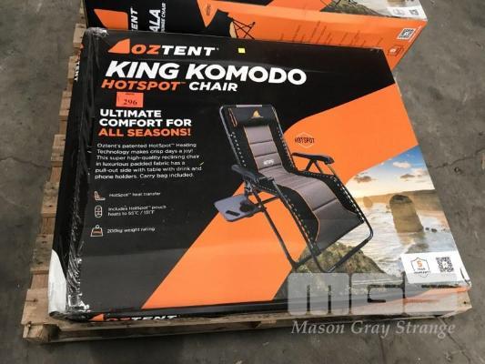 RECLINING CAMP CHAIR, OZ TENT, KING KOMODO, WITH HOT SPOT TECHNOLOGY (WATER DAMAGED)