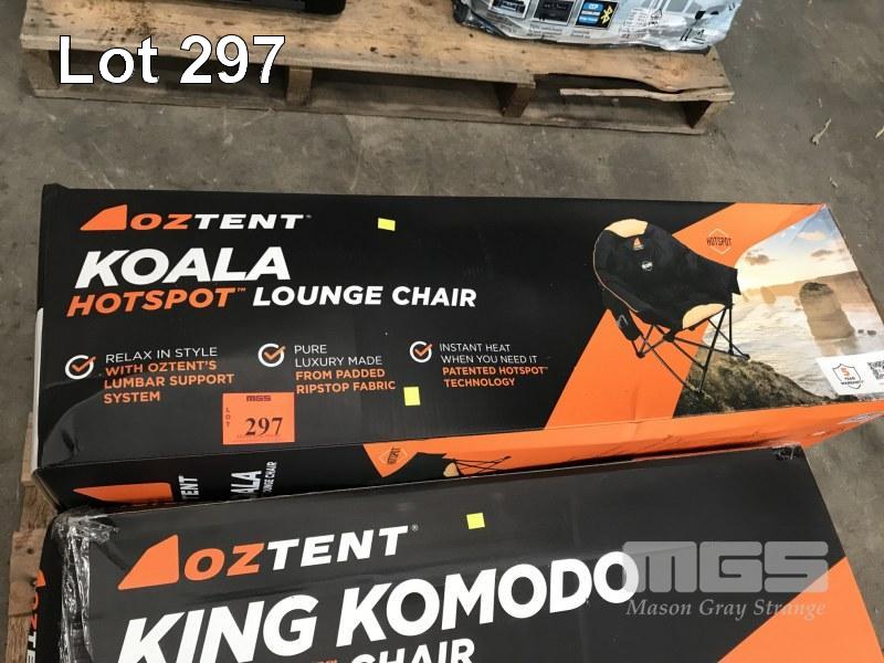 CAMP LOUNGE CHAIR, OZ TENT, KOALA, WITH HOT SPOT TECHNOLOGY (WATER DAMAGED)