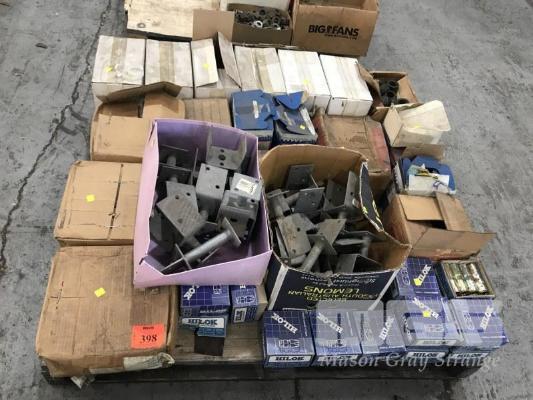 ASSORTED FASTENERS, SCREWS, NAILS, RIVETS, WALL ANCHORS & POST FEET, 1 x PALLET