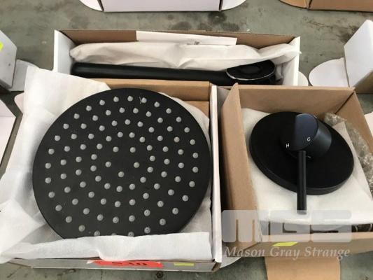 ROUND SHOWER ROSE, 20cm DIAMETER WITH MIXER & ARM, BLACK