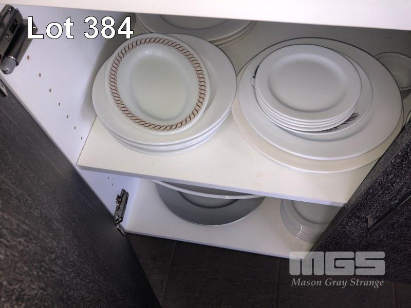 HOME CO MICROWAVE, SANDWICH TOASTER, 2 SLICE TOASTER, ELECTRIC KETTLE, CONTENTS OF CUPBOARD, GLASS & CHINAWARE, CUTLERY, ETC