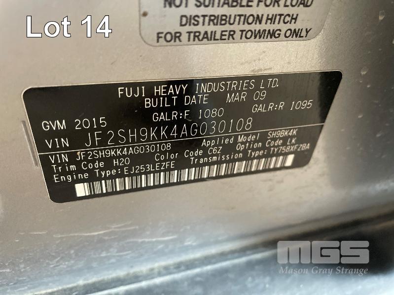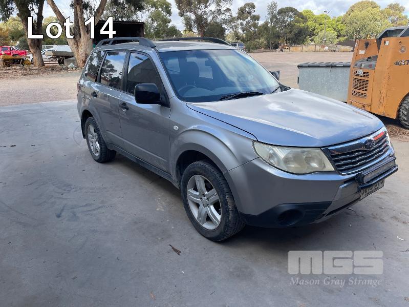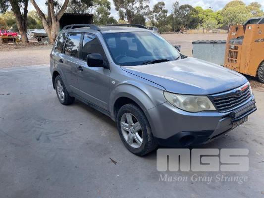 2009 SUBARU FORRESTER WAGON REG S075 BTS VIN JF2SH9KK4AG030108 148,000 KM PETROL, MANUAL, SILVER DUCO, CLOTH TRIM, AC,PS,EW,CC, TOWBAR, LIGHT BAR. (MINOR BUMPER DAMAGE ON FRONT)