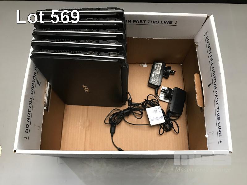 5 x NETBOOKS, ACER ASPIRE ONE 753, CELERON U3600 @ 1.2GHz, 2GB RAM, 320GB SATA HDD, 11.6" WIDESCREEN (NOTE: WITH 2 x POWER SUPPLIES, 1 x NETBOOK MISSING ARROW KEY)