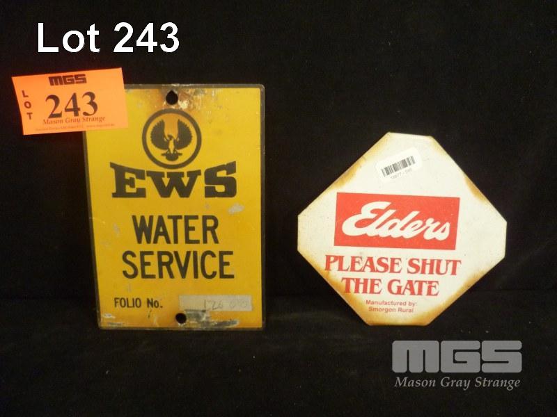ORIGINAL ELDERS PLEASE SHUT THE GATE SIGN & EWS WATER SERVICE ENAMEL SIGN