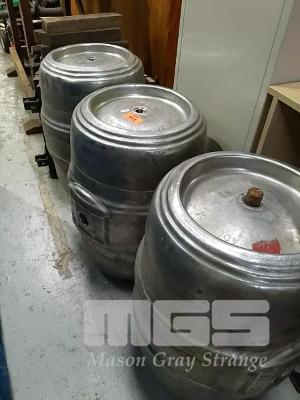 3 x METAL WINE BARRELS & 1 x WOODEN BARREL