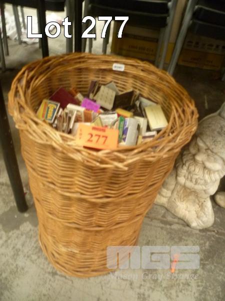 CANE LAUNDRY BASKET WITH ASSORTED COLLECTABLE MATCHES