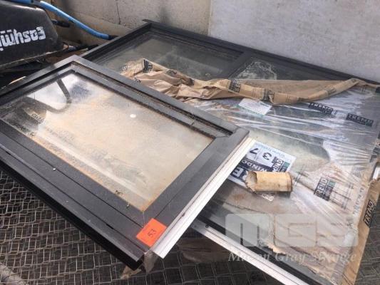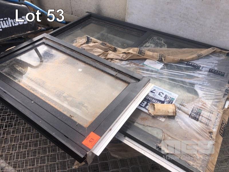 PAIR ALUMINIUM WINDOWS, BLACK FRAME 1 x WIND OUT, 970 x 630mm & 1 x SLIDING PANEL, 1600 x 1100mm APPROX