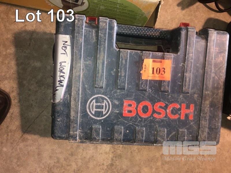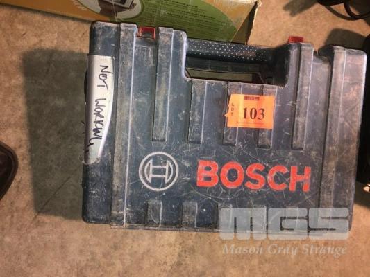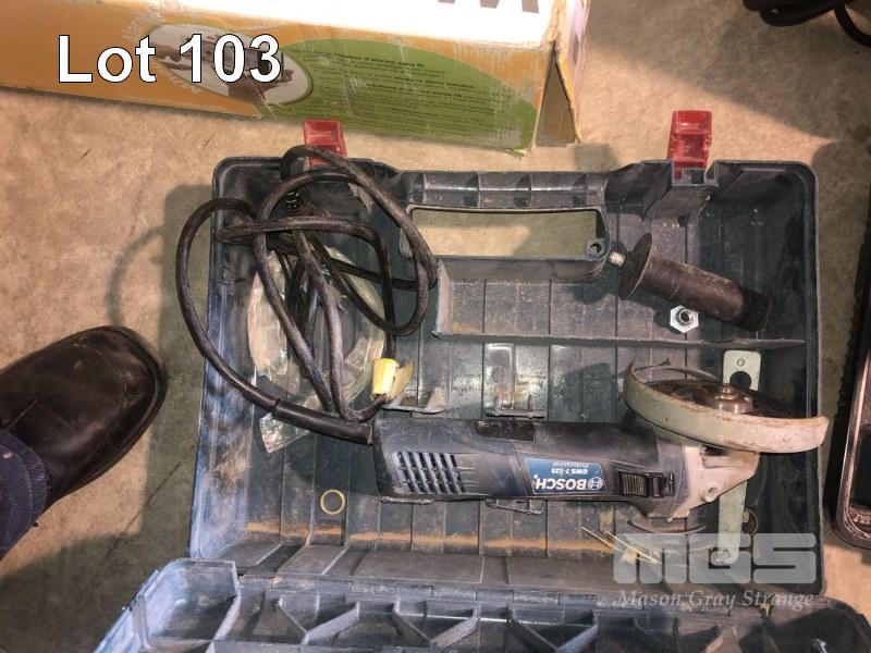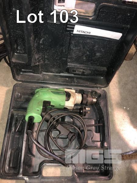 HITACHI HAND DRILL, MOD: DV13VSS 240V, REVERSIBLE & BOSCH ANGLE GRINDER IN CASE CONDITION UNKNOWN
