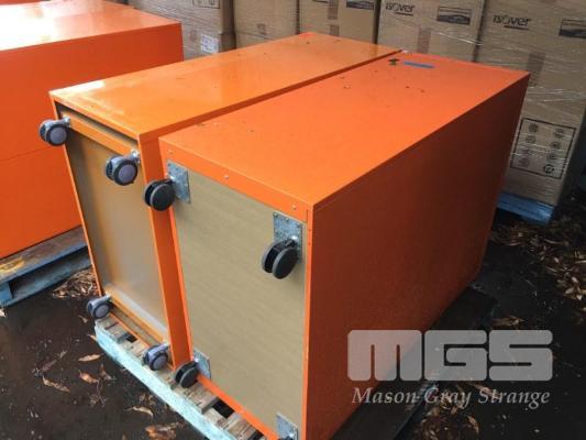 PAIR MOBILE TAMBOUR CABINETS, ELITE BUILT SCHIAVELLO 90 x 50 x 125cm (H)