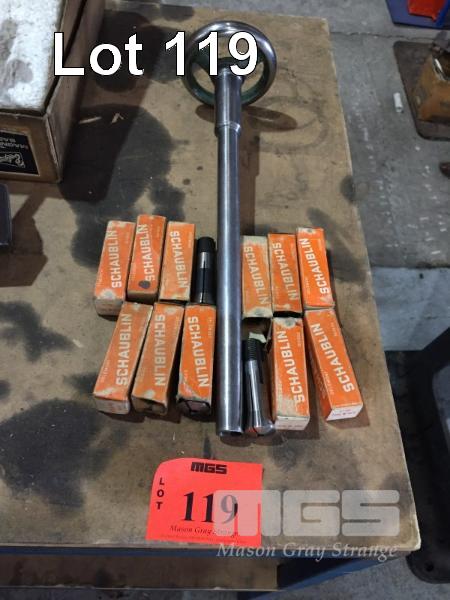 12 x SCHAUBLIN COLLETS WITH 9" HERCUS DRAW BAR