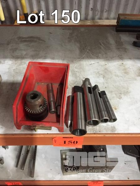 4 x TAPER DRILL SLEEVES, 1-2, 2-3, 2 @ 3-4 & 1 x No 2 M/T DEAD CENTRE 16mm DRILL CHUCK WITH 2 x ARBOURS