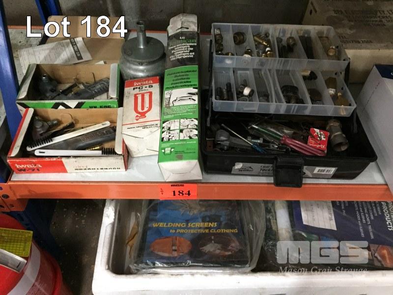 SPRAY GUNS, TOOLBOX & CONTENTS & 1 x BOX WELDING CURTAINS