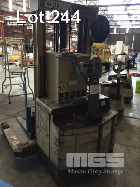 WALK BEHIND REACH TRUCK, CROWN MOD: 30WRTL126 S/NO: SOW2942 MAX LIFT HEIGHT: 3200mm 1,361kg CAPACITY WITH SOLID STATE BATTERY CHARGER, 240V