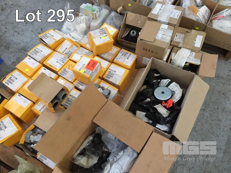 PARKER HYDRAULIC HOSE FITTINGS, ASSORTED SIZES INC 38mm x 30 BOXES OF 2 UNITS 12mm, 1 x BOX OF 20 ASSORTED RUBBER & STEEL BONER SUPPORTS/VIBRATION DAMPENERS, MANAPAK CHECK VALVES, ETC 1 x PALLET