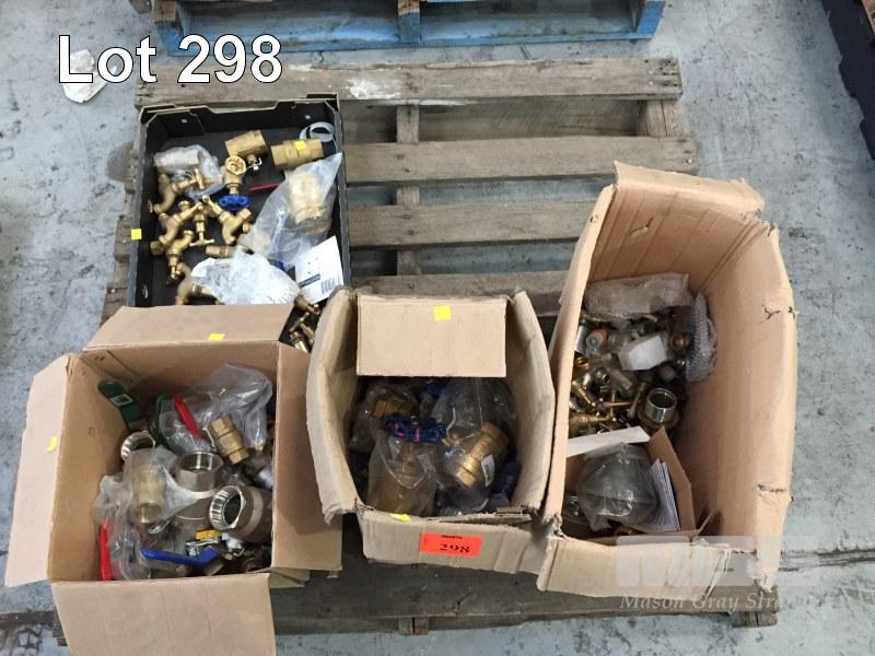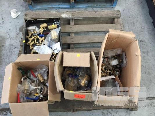 ASSORTED TAPS & VALVES, BRASS, STAINLESS STEEL, 2 x BOXES, 1 x TRAY