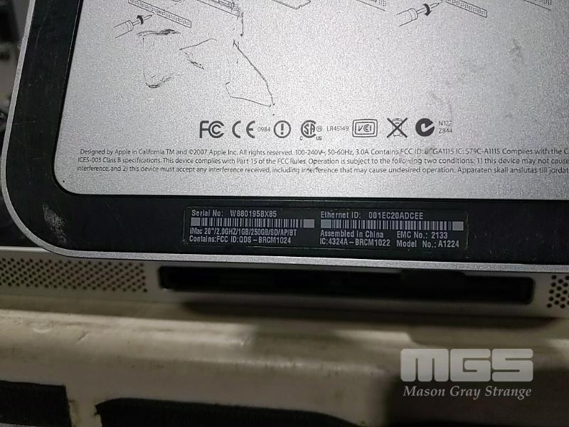 APPLE iMAC (A1224) COMPUTER, CORE 2 DUO T7300 @ 2.0GHZ, 1GB DDR2 RAM, 250GB SATA HDD, DVD-RW, BUILT-IN 20" DISPLAY (NO KEYBOARD, NO MOUSE) SN:W8801958X85