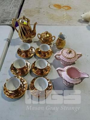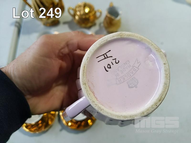 TEA SET GOLD PLATED "ST KILDA FINE CHINA AUSTRALIA" AND "SADLER MADE IN ENGLAND" SUGAR BOWL AND MILK JUG
