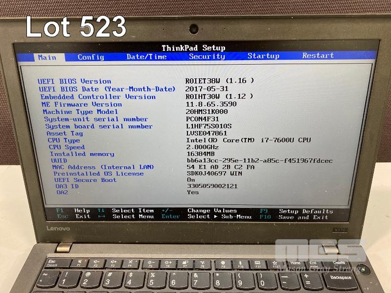 LAPTOP, LENOVO THINKPAD X270 (20HMS1K000), CORE i7 7600U (7TH GEN) @ 2.8GHz, 16GB DDR4 RAM, 512GB NVMe M.2 SSD, 12.5" WIDESCREEN (1920x1080), INTEL HD VIDEO, Wi-Fi, BLUETOOTH, WINDOWS 10 PRO INSTALLED & POWER SUPPLY S/N:PC0N4F31
